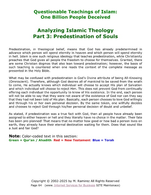 in hell. Islam is one such religious ideology that teaches predestination, while Christianity